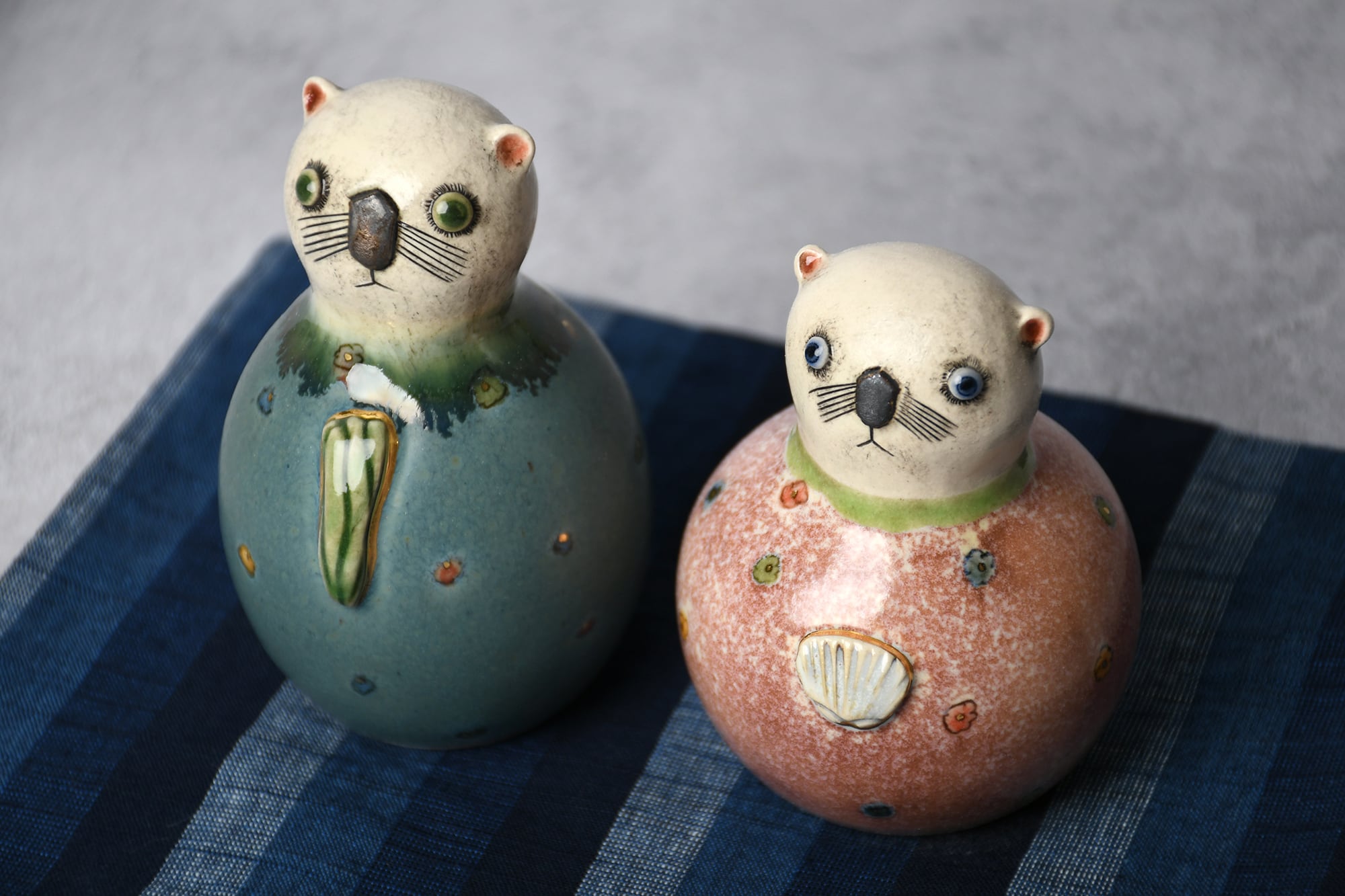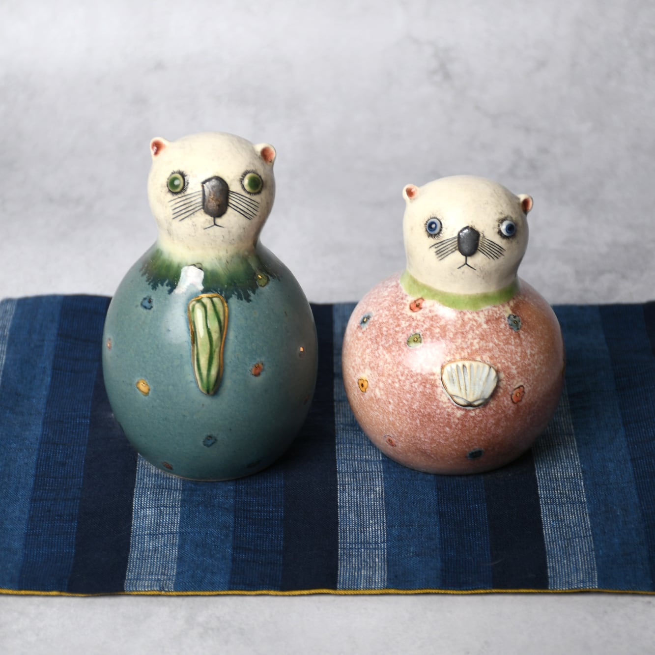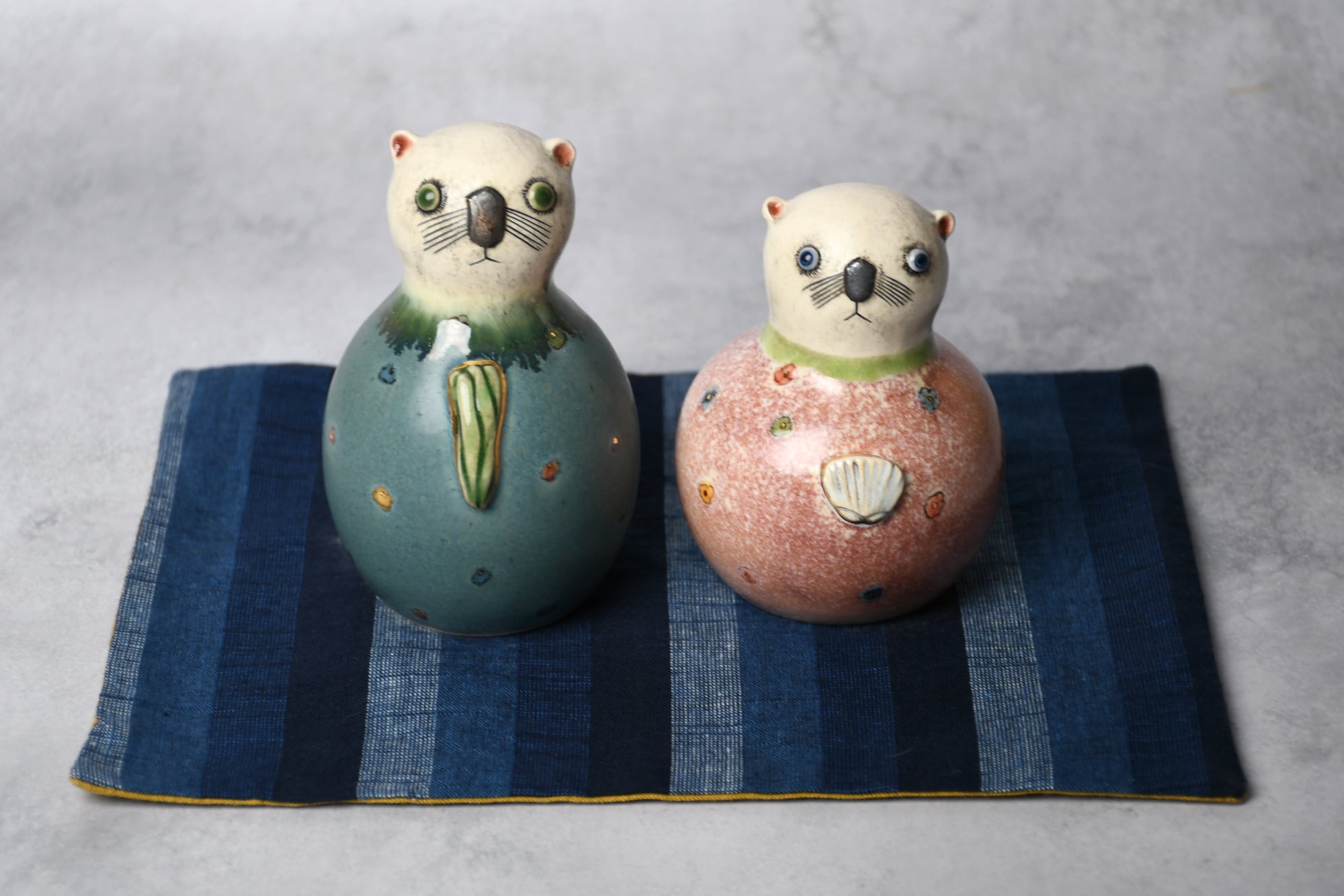 型を使わずにひとつひとつ成形していますので、体格や表情もそれぞれ異なる1点ものです。どうぞお気に入りのふたりを見つけてください。