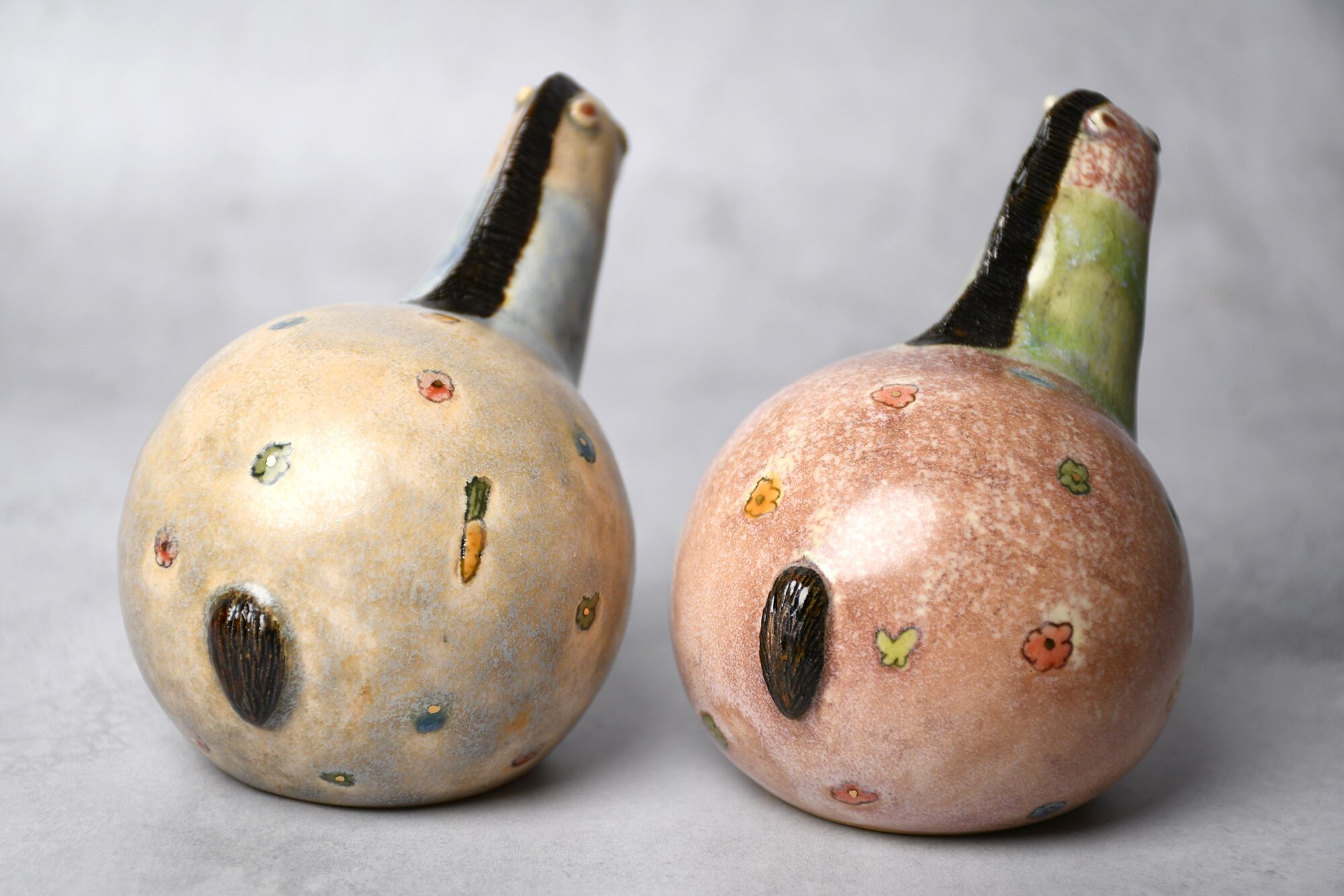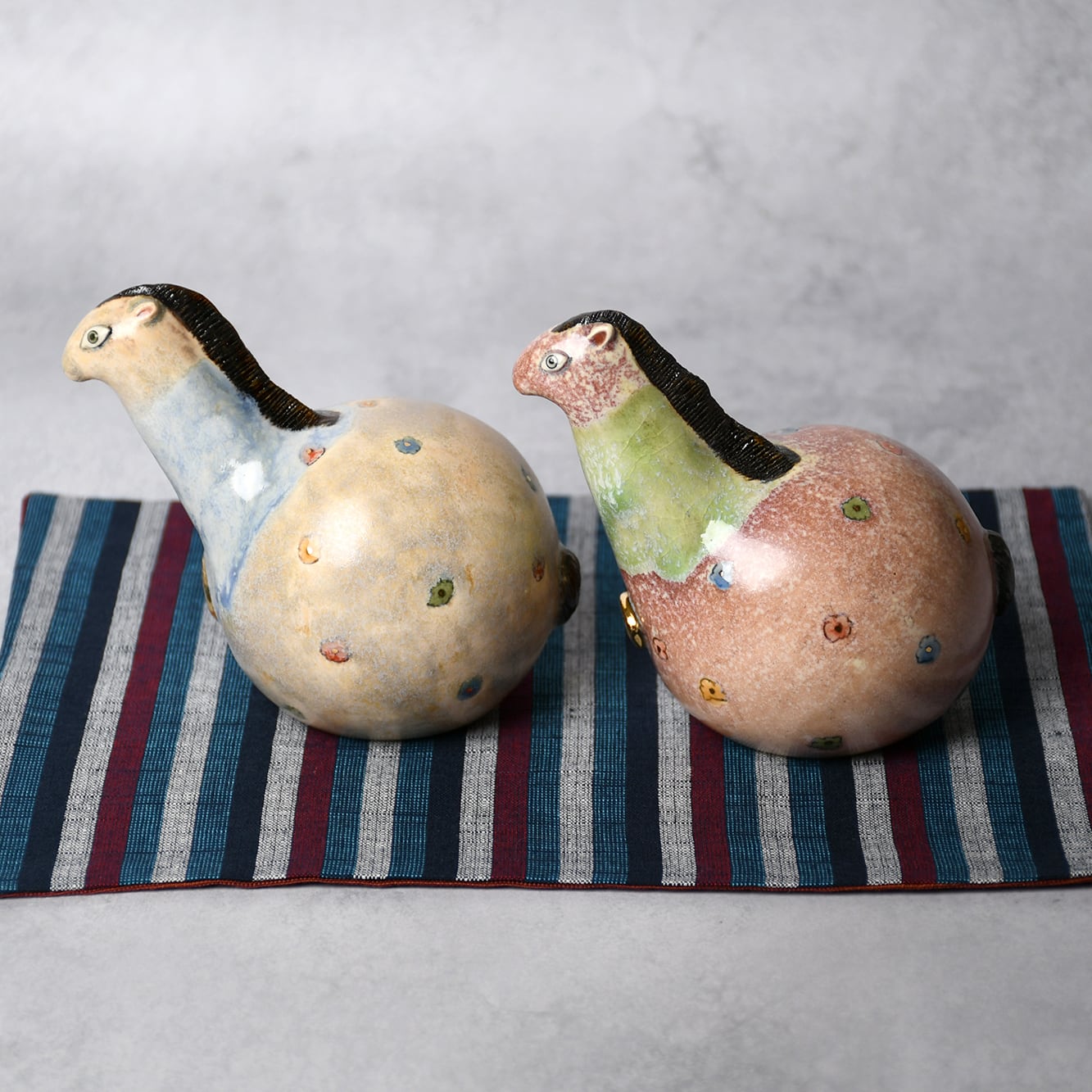 型を使わずにひとつひとつ成形していますので、体格や表情もそれぞれ異なる1点ものです。どうぞお気に入りのふたりを見つけてください。