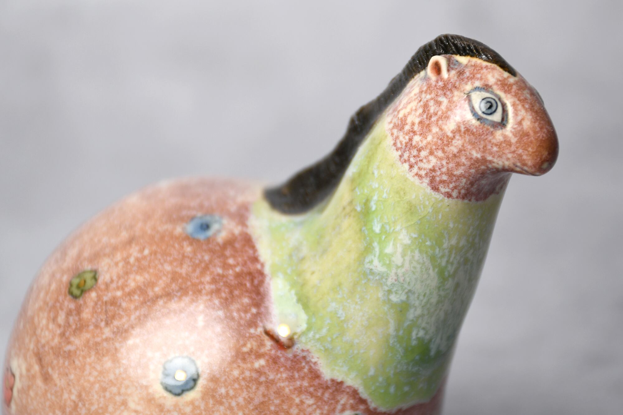 線刻・釉彩・金彩を施した、陶のお雛様です。空洞になったお腹の中には土のかけらが入っているので、振り動かすとささやかに音がします。