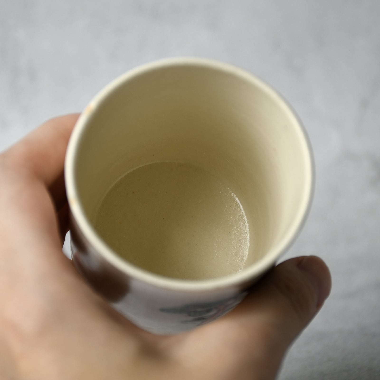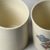 線刻と釉彩による装飾を施した、小ぶりなお湯呑みです。写真の2種よりお選びください。