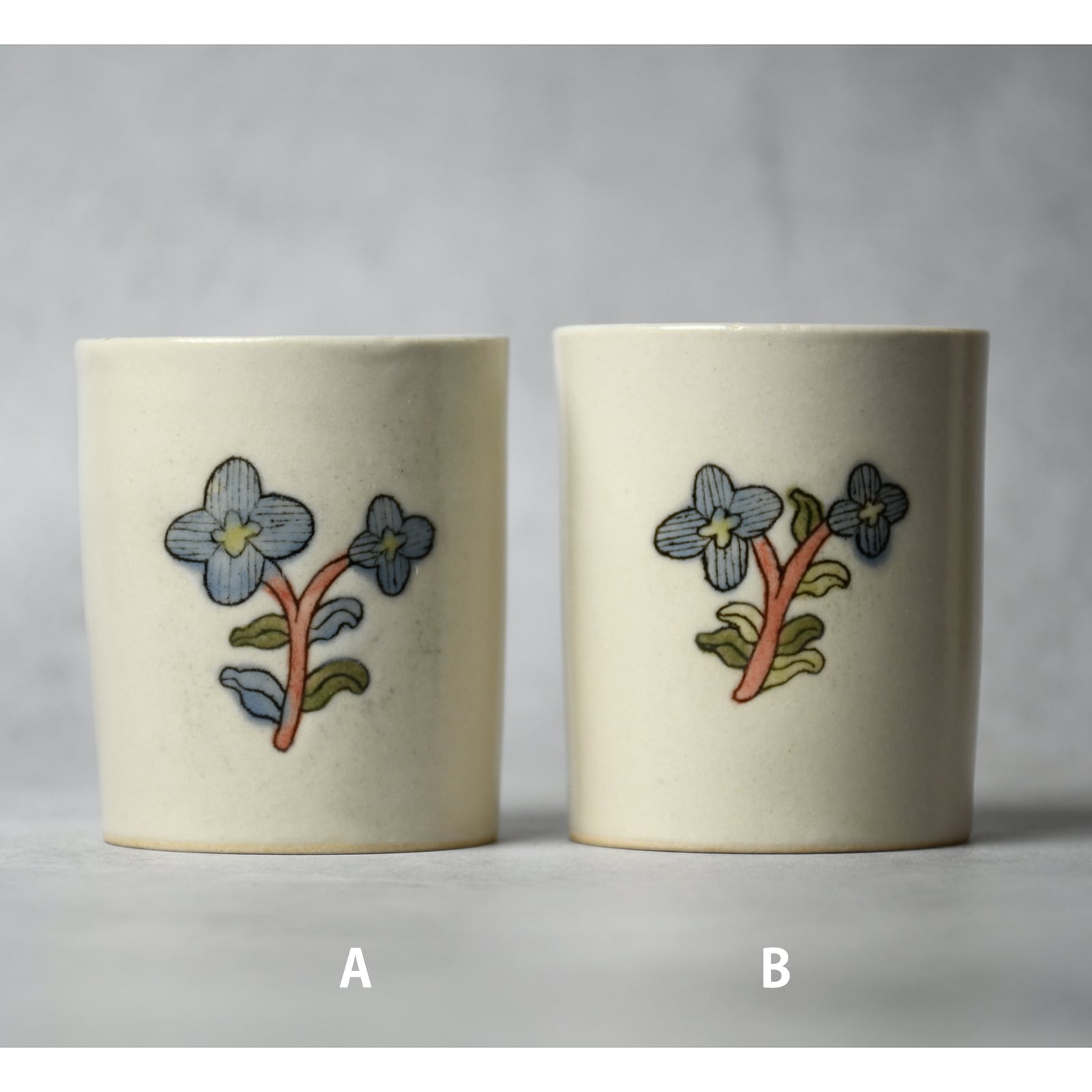線刻釉彩ゆのみ - flower [ blue ]