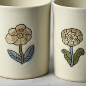 線刻と釉彩による装飾を施した、小ぶりなお湯呑みです。写真の2種よりお選びください。