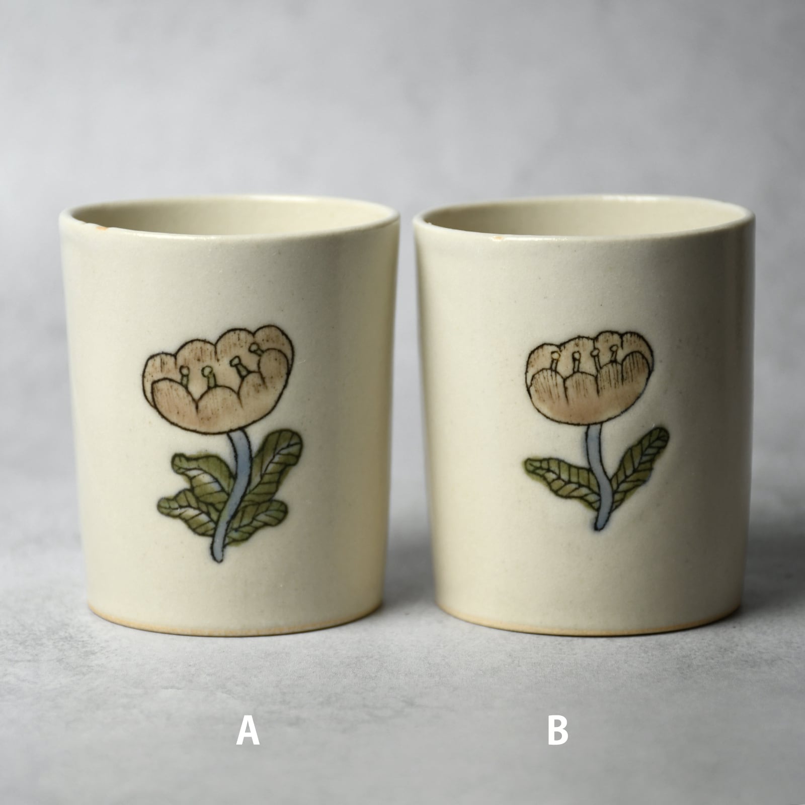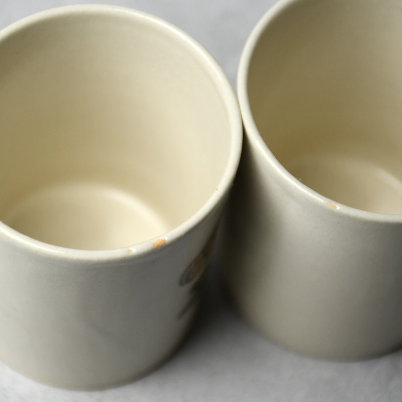 線刻と釉彩による装飾を施した、小ぶりなお湯呑みです。写真の2種よりお選びください。