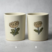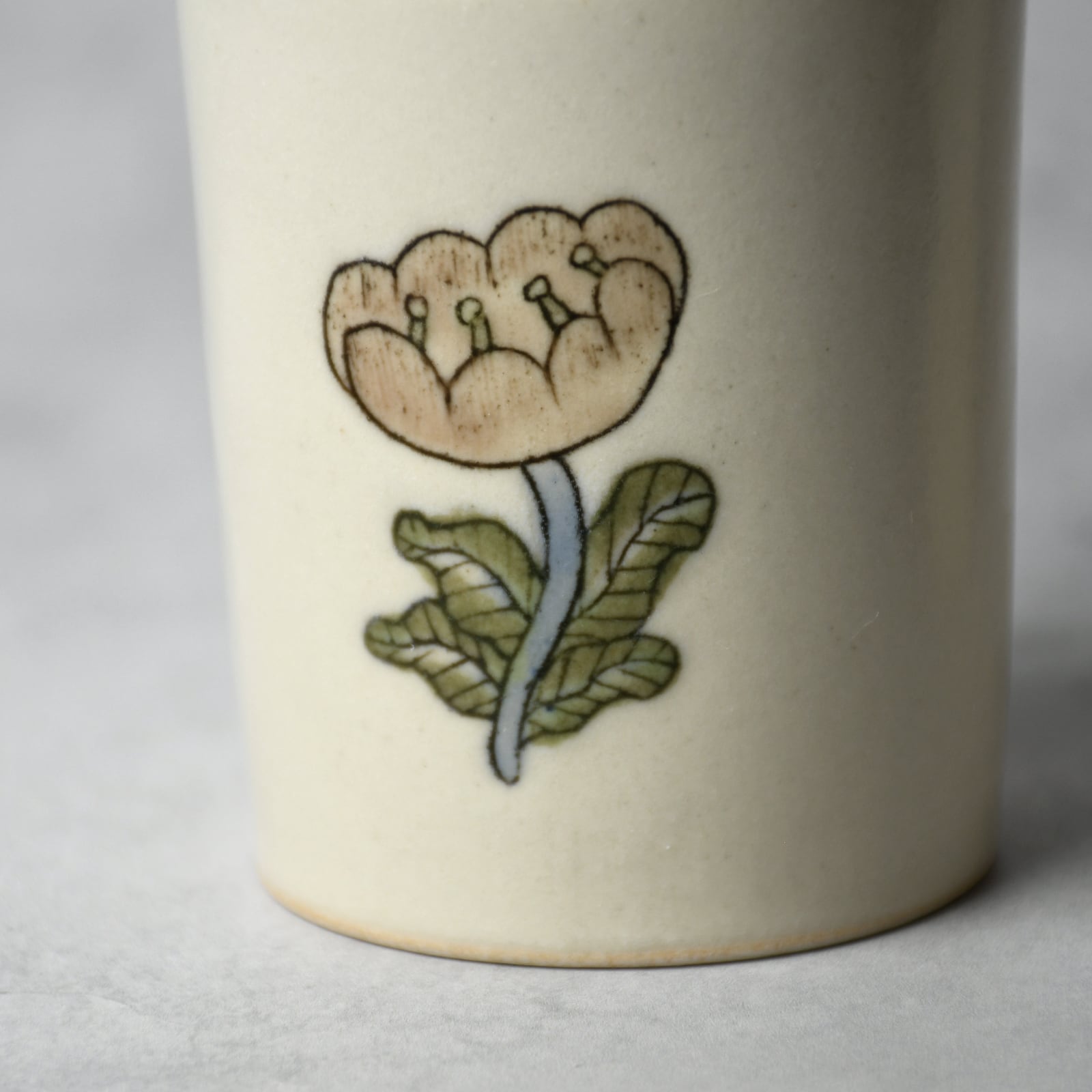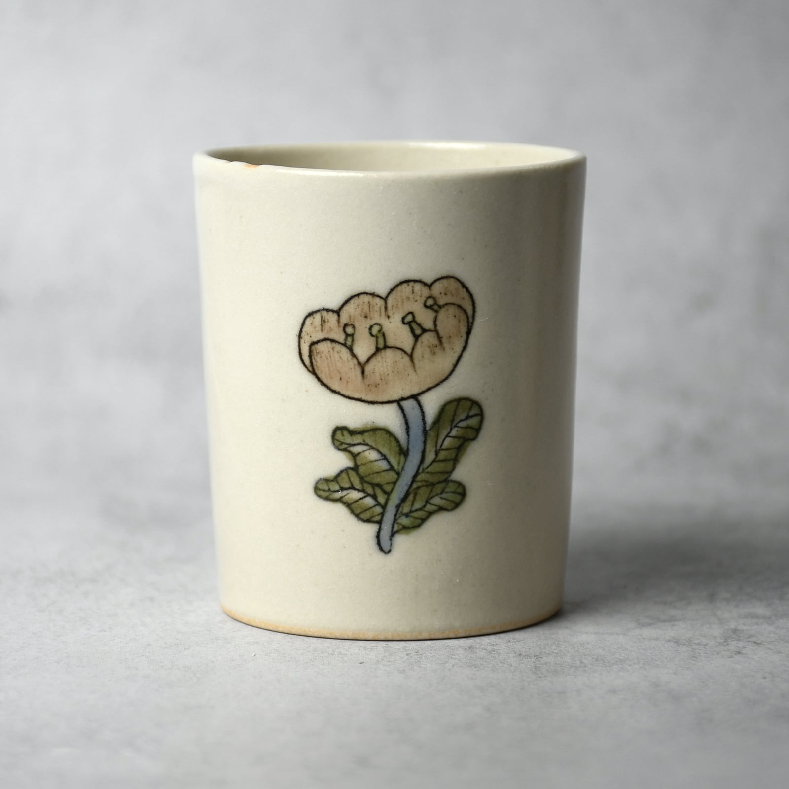 線刻釉彩ゆのみ - flower [ pink - 2 ]