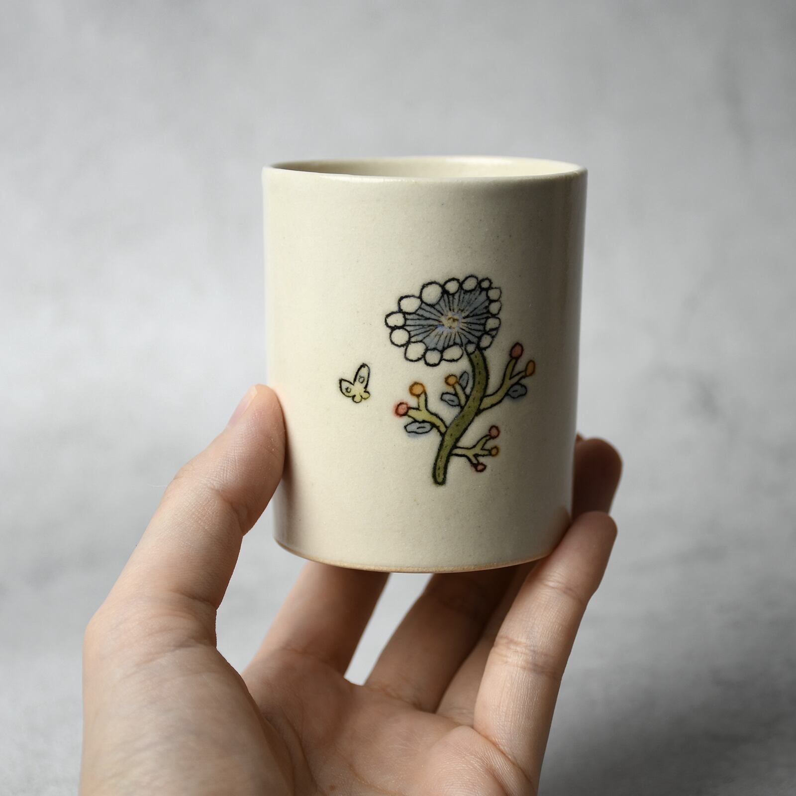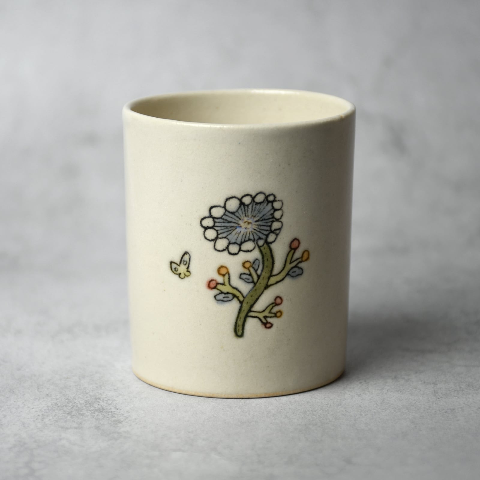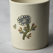 線刻釉彩ゆのみ - flower [ blue - 2 ]