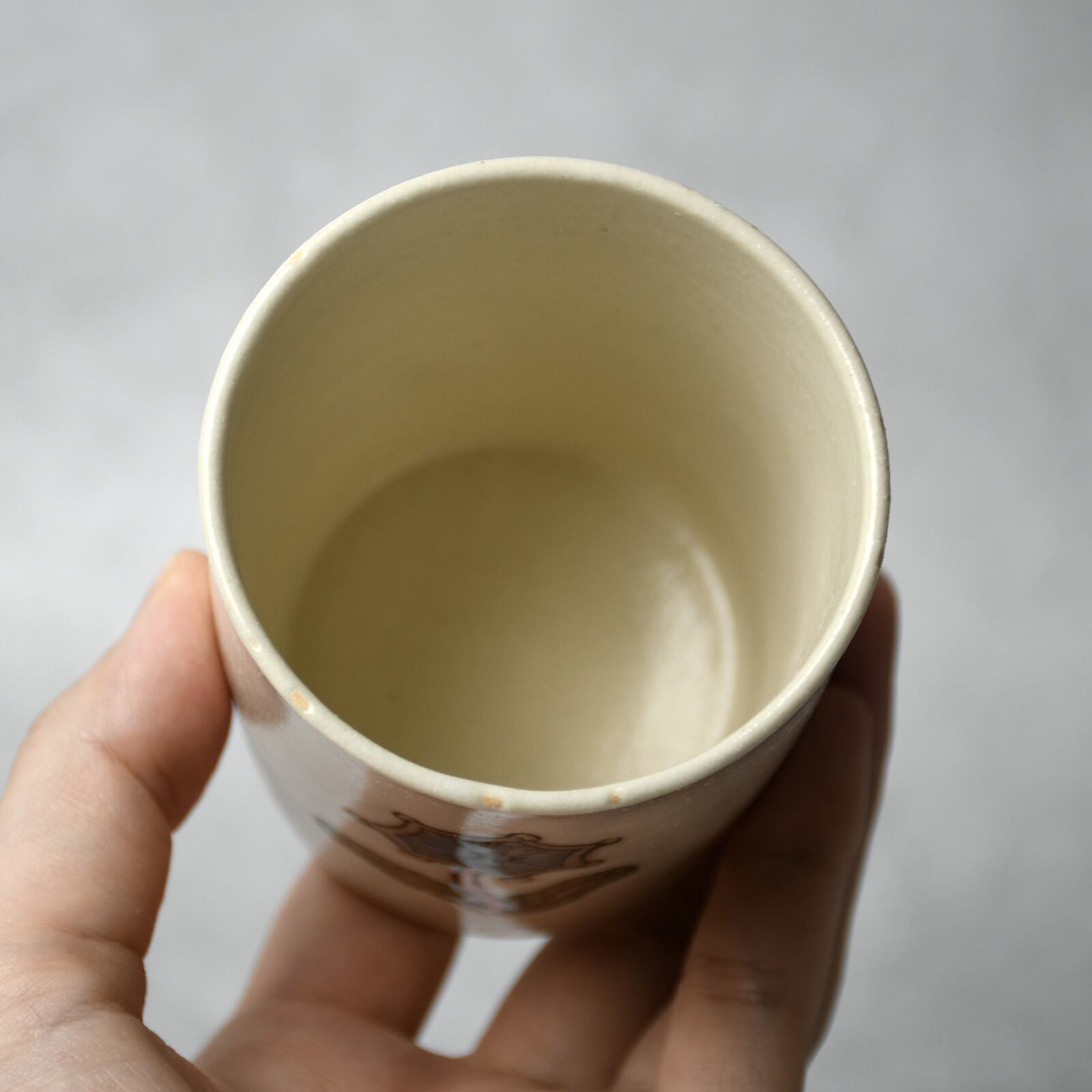 線刻と釉彩による装飾を施した、小ぶりなお湯呑みです。写真の2種よりお選びください。