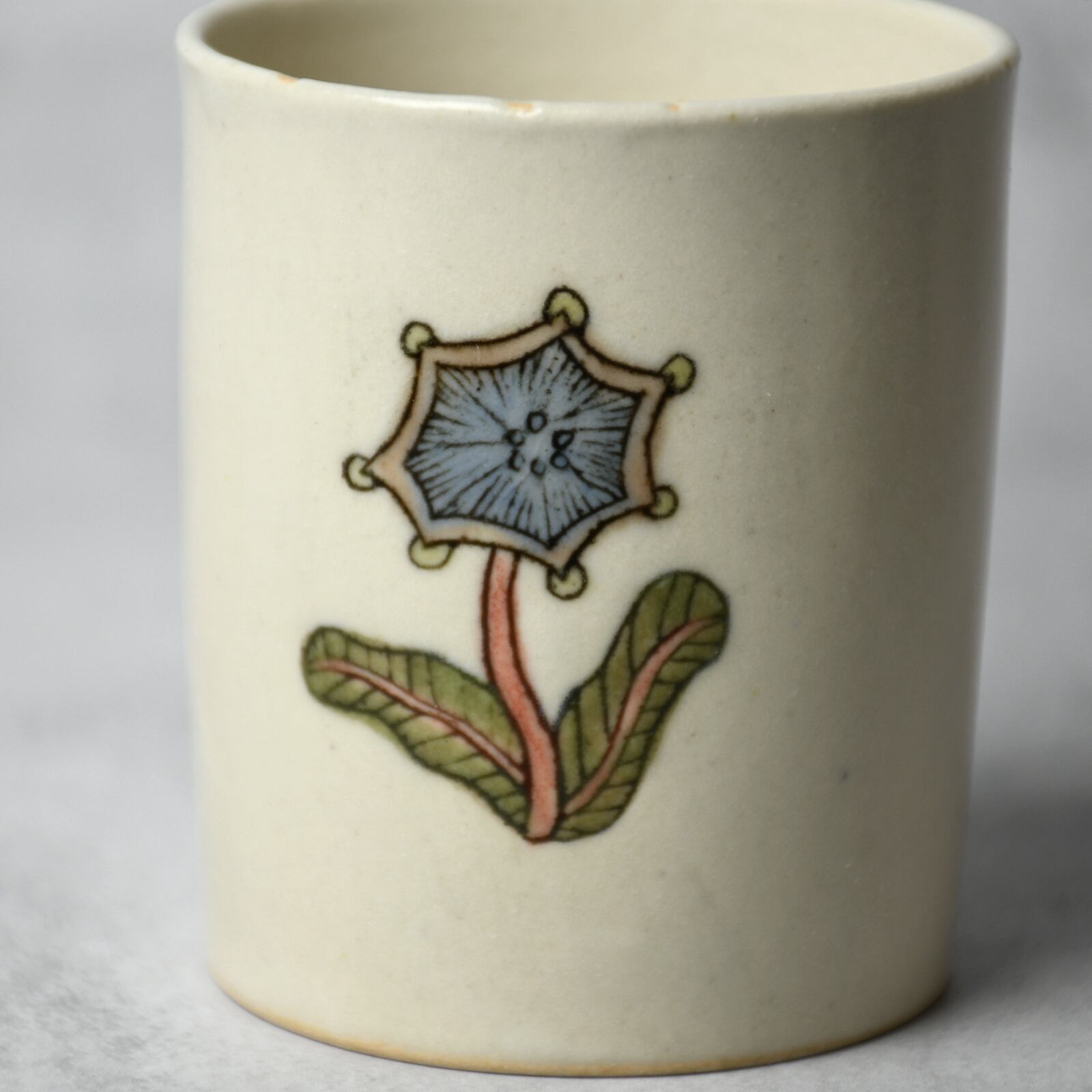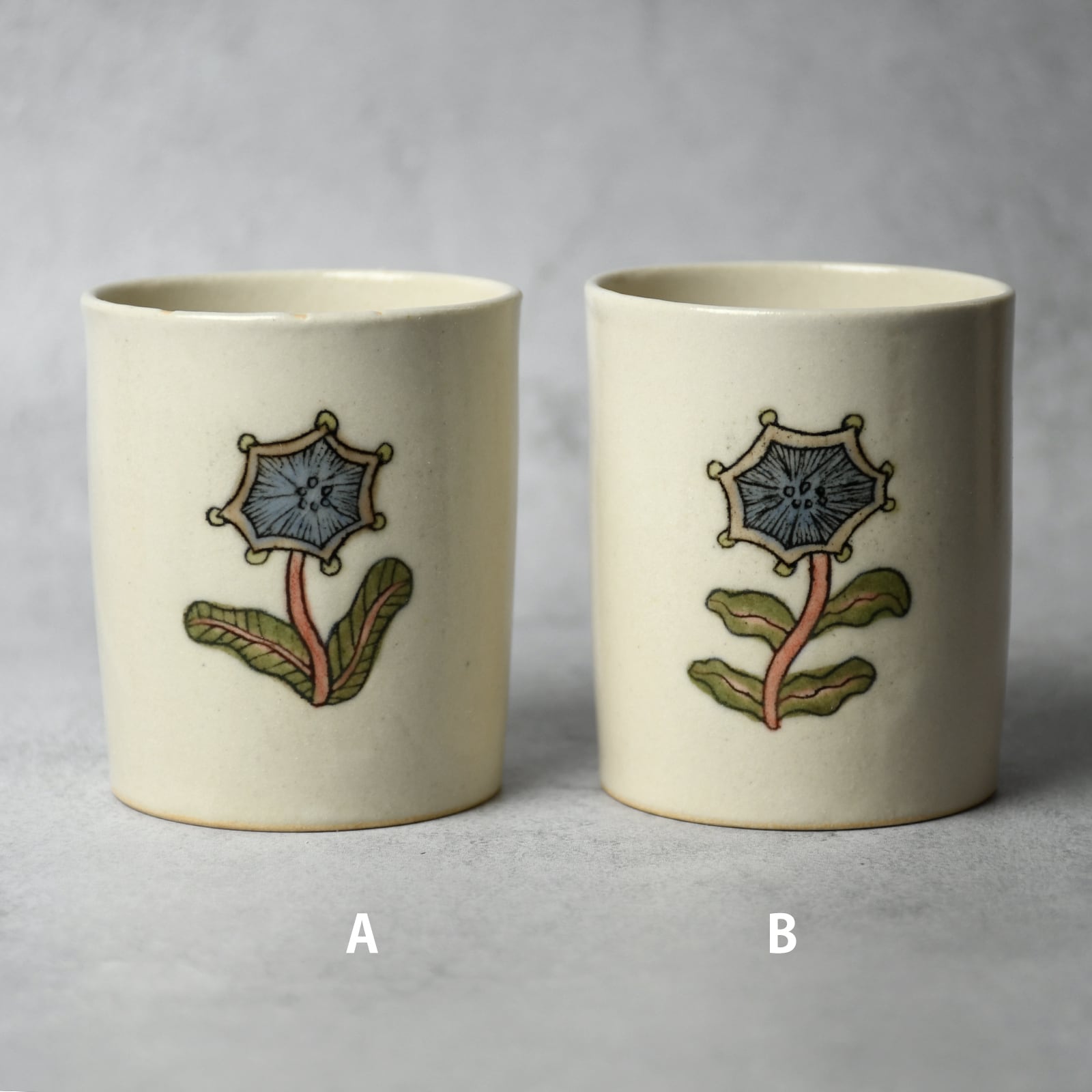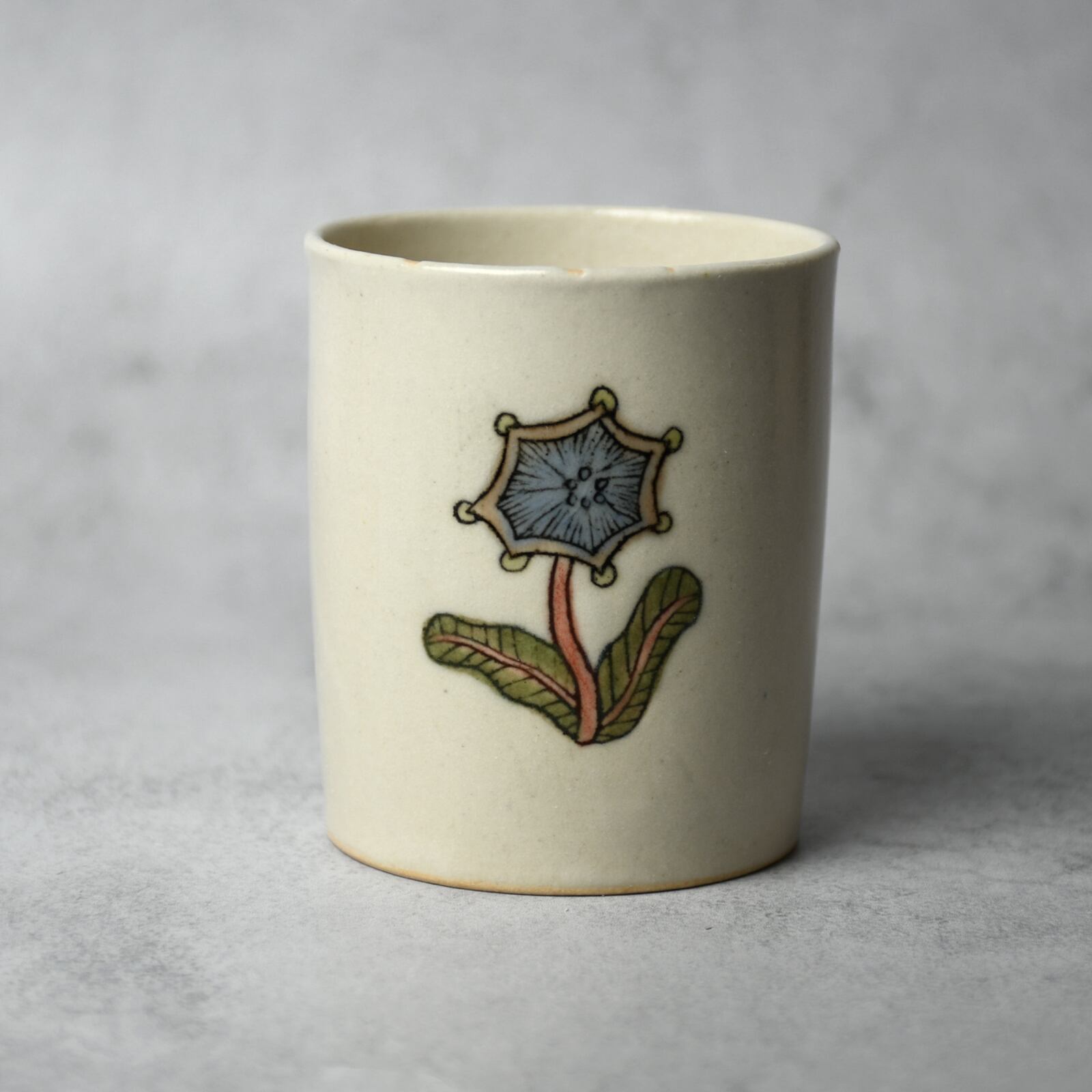 線刻釉彩ゆのみ - flower [ blue - 3 ]