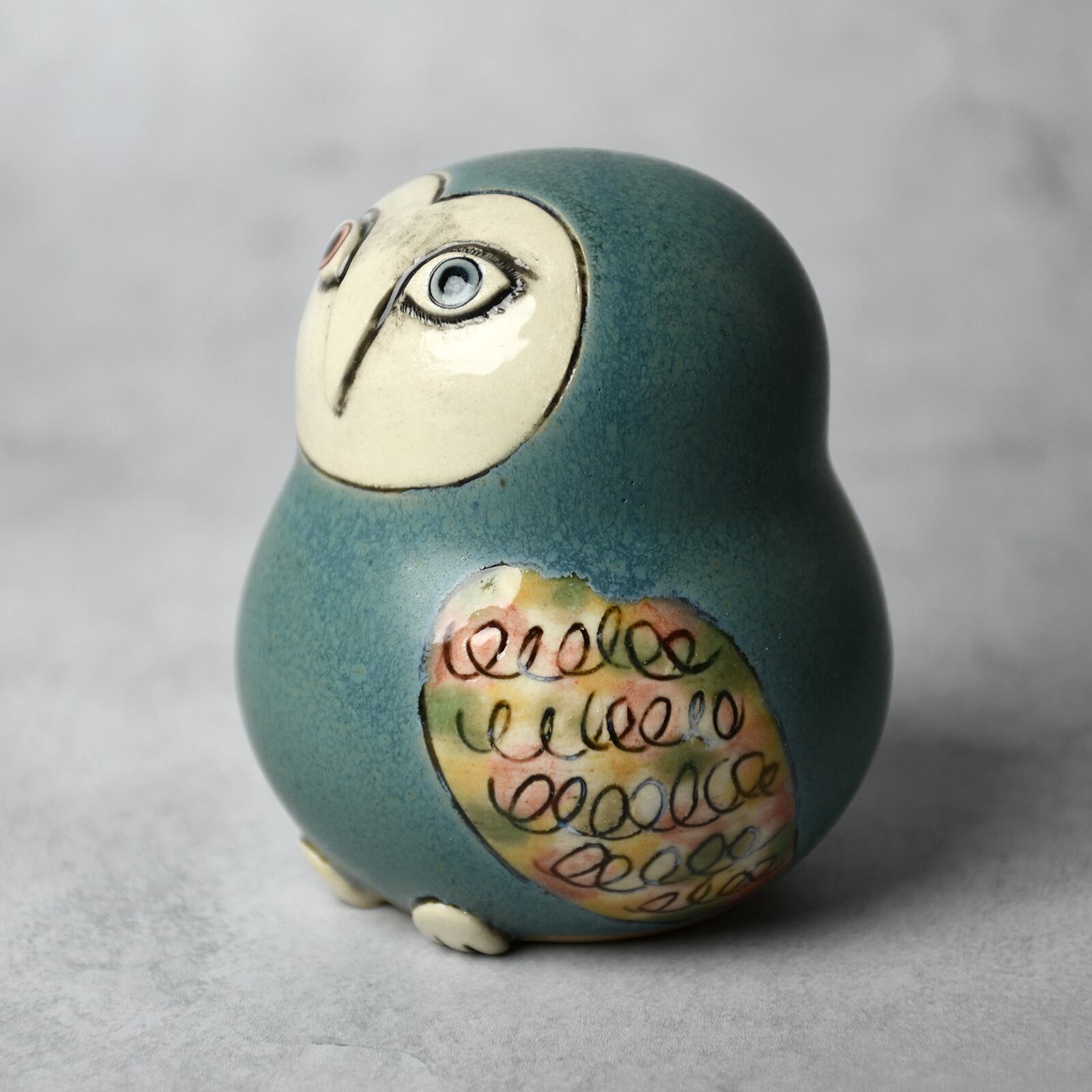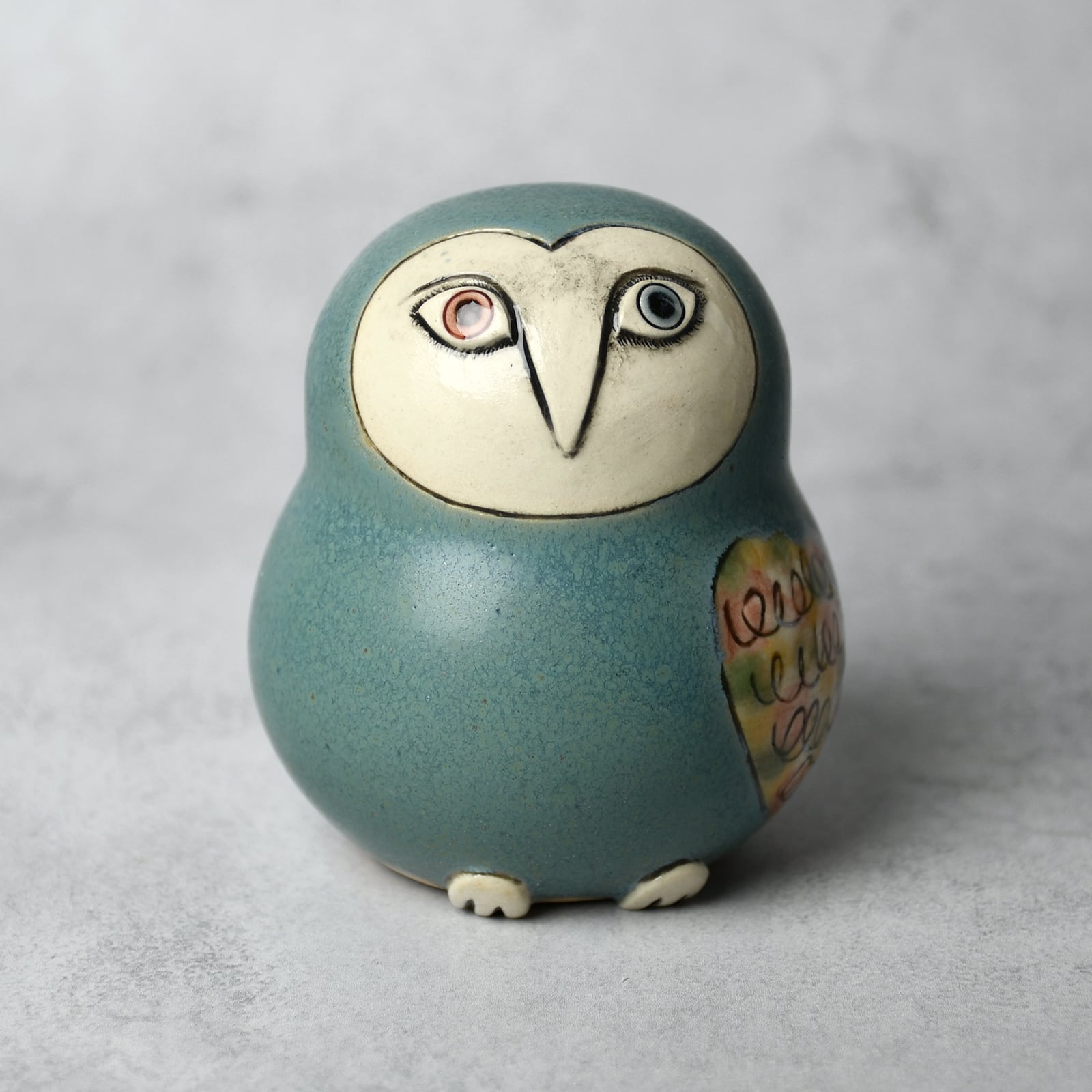 ふくふくとした、ふくろうの陶人形です。目力がすごいです。