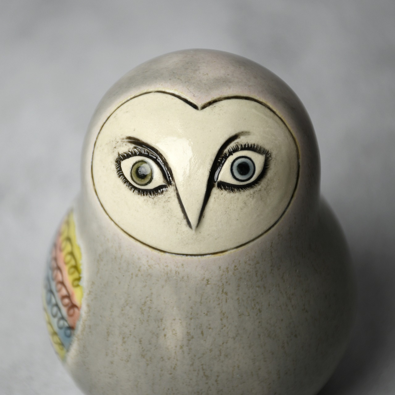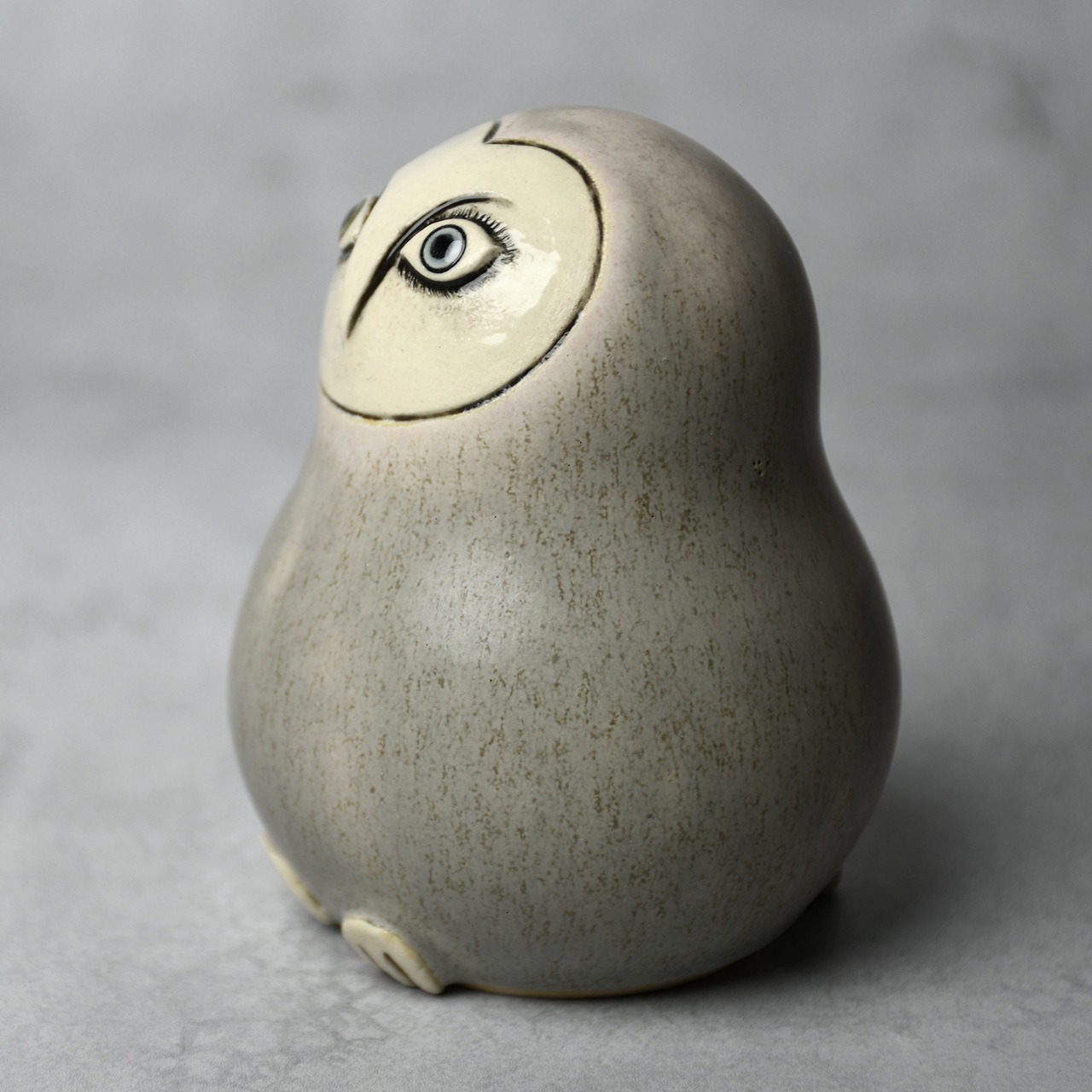 ふくふくとした、ふくろうの陶人形です。目力がすごいです。