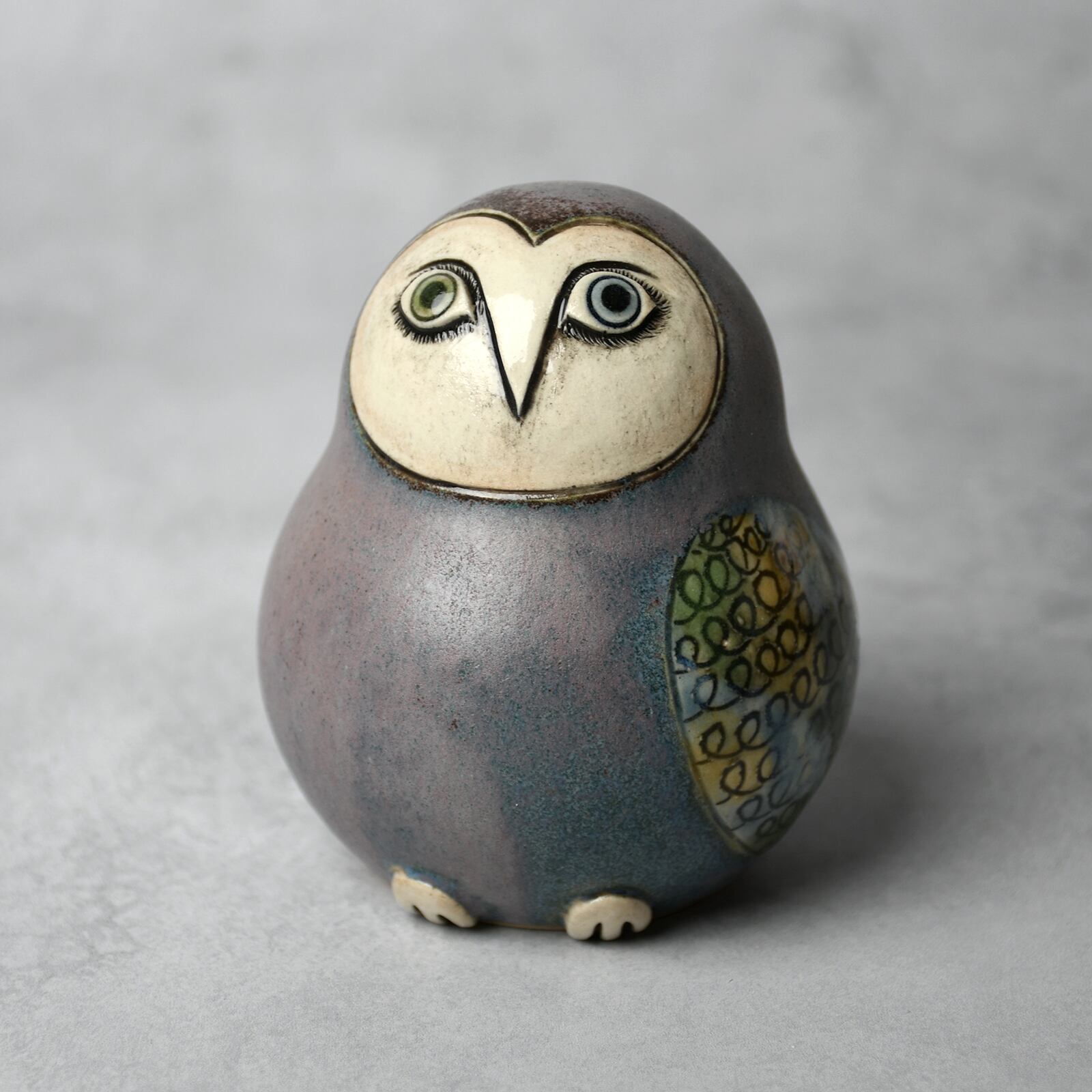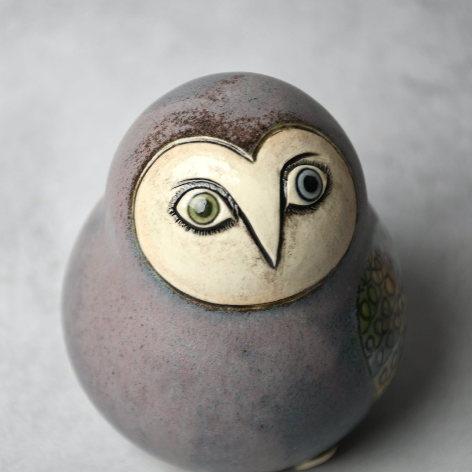 ふくふくとした、ふくろうの陶人形です。目力がすごいです。
