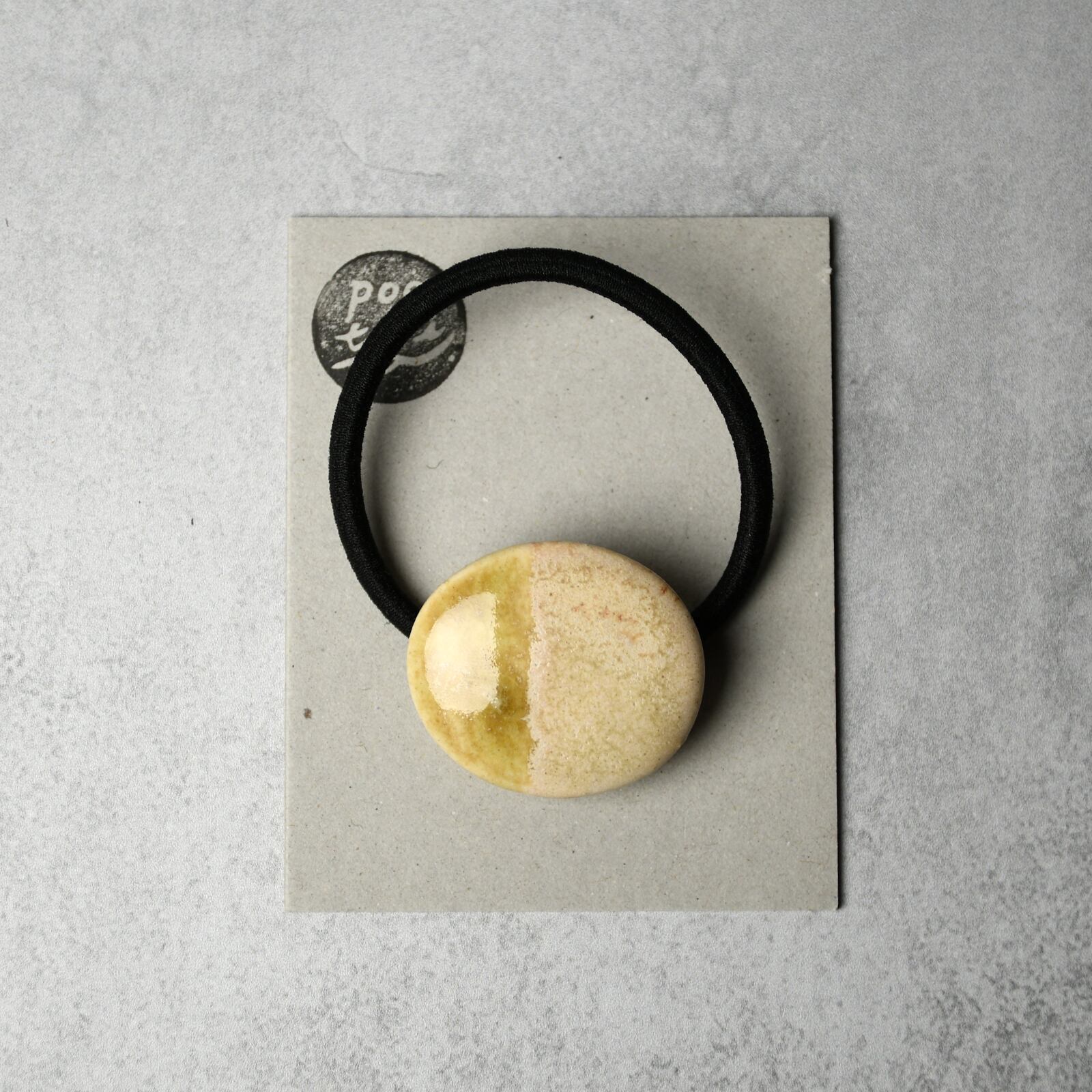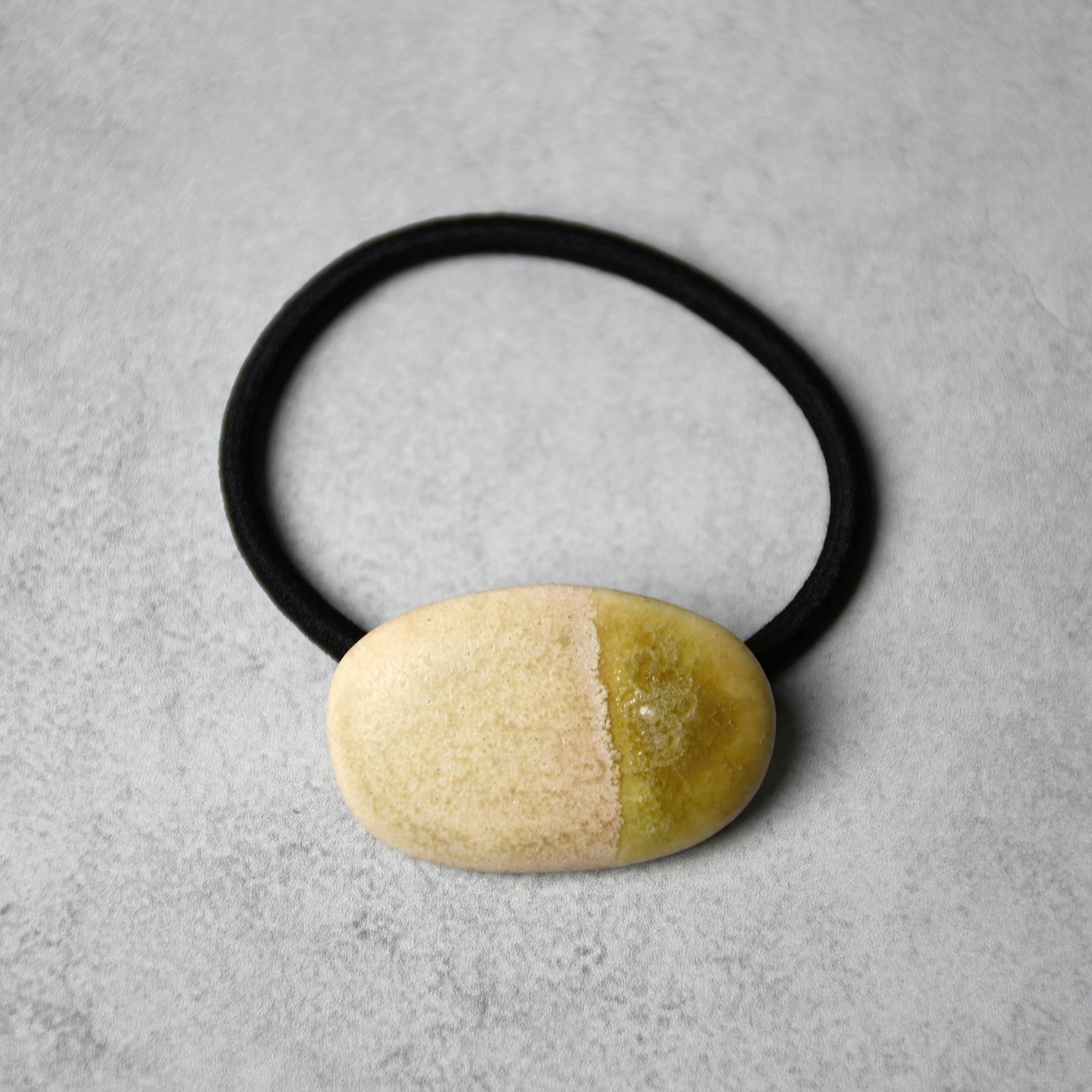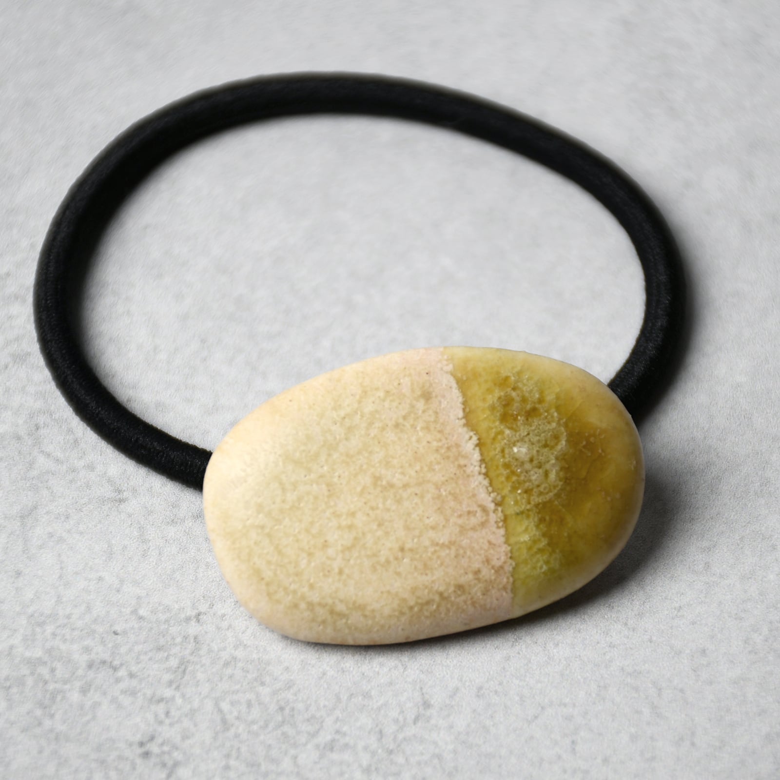 陶土でできた偽物の石ころ...を平たくしてヘアアクセサリーに仕立てました。陶ならではの重さもあり、まとめ髪にすると安定感があります。