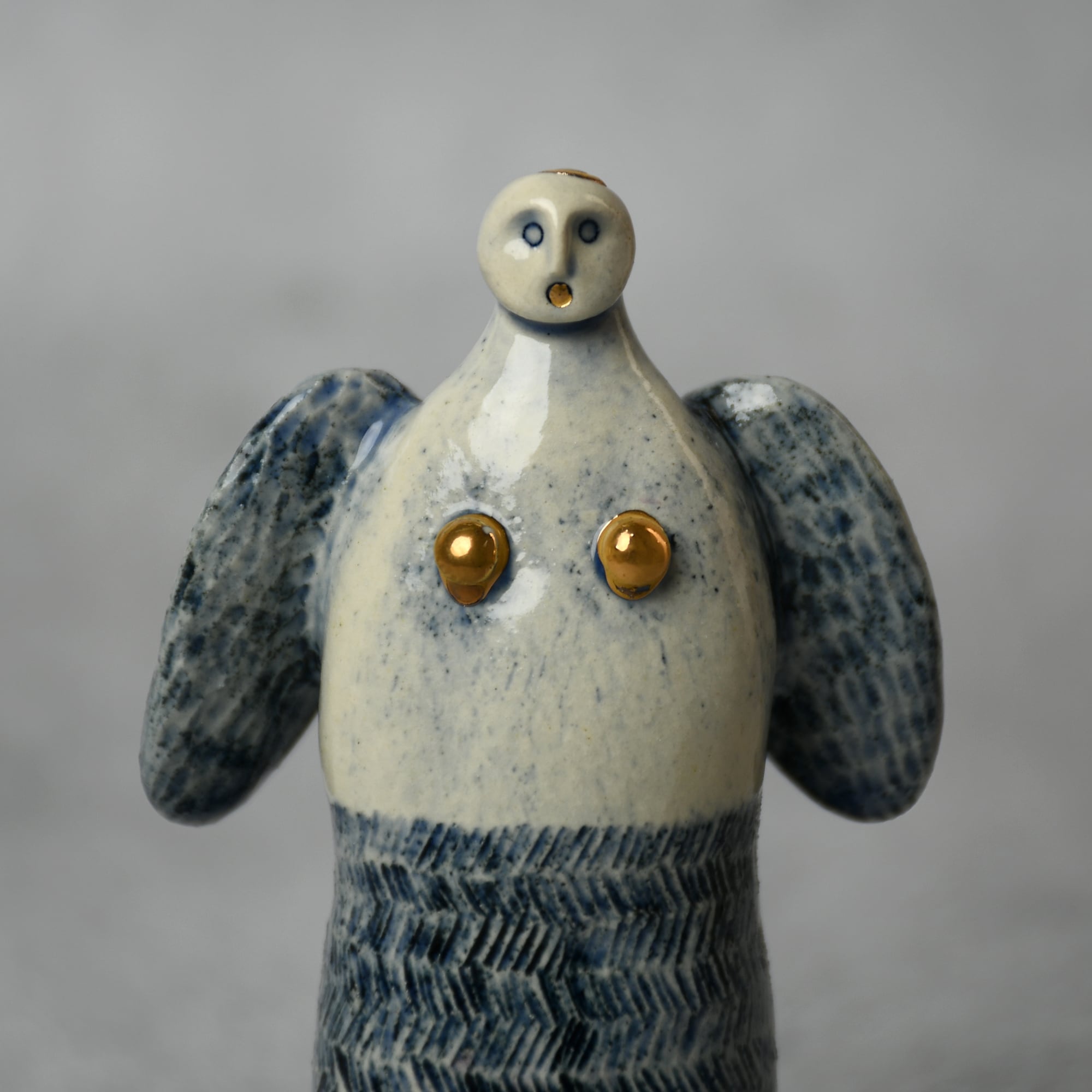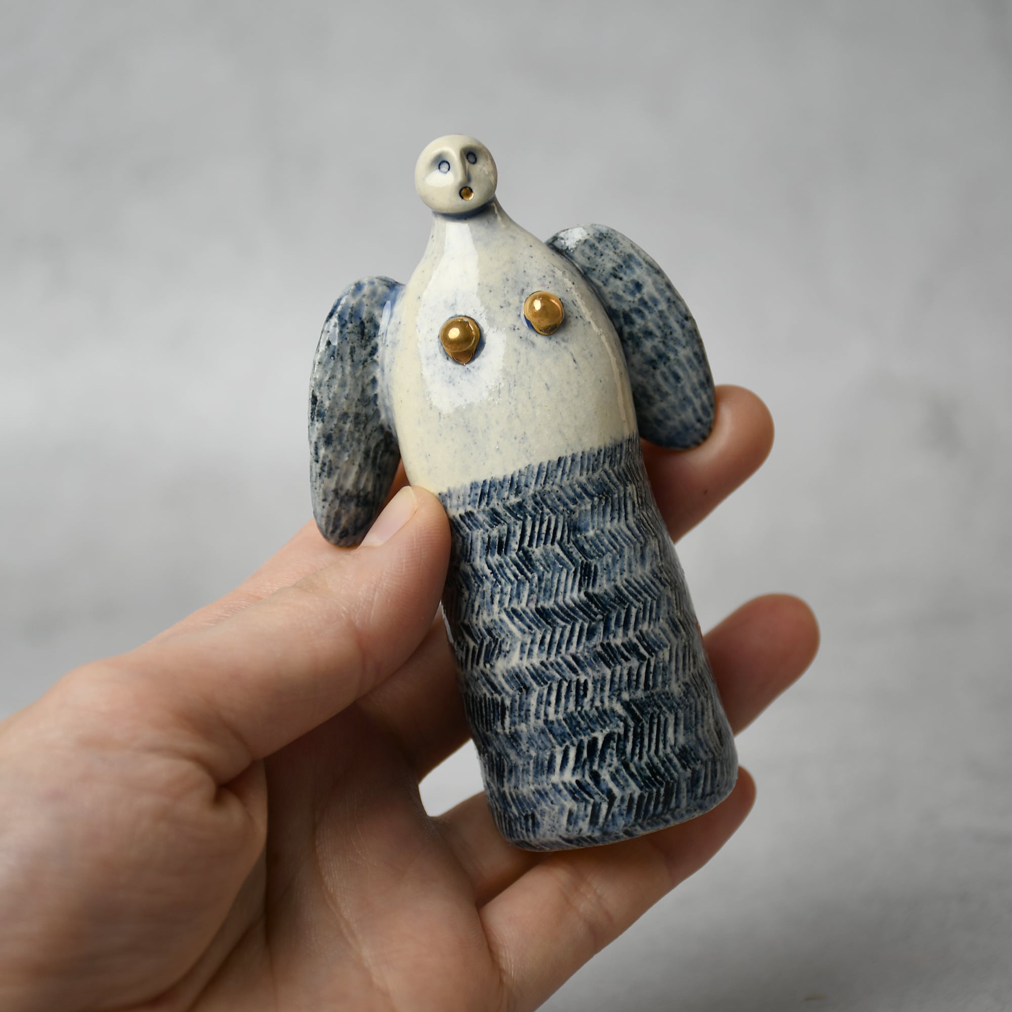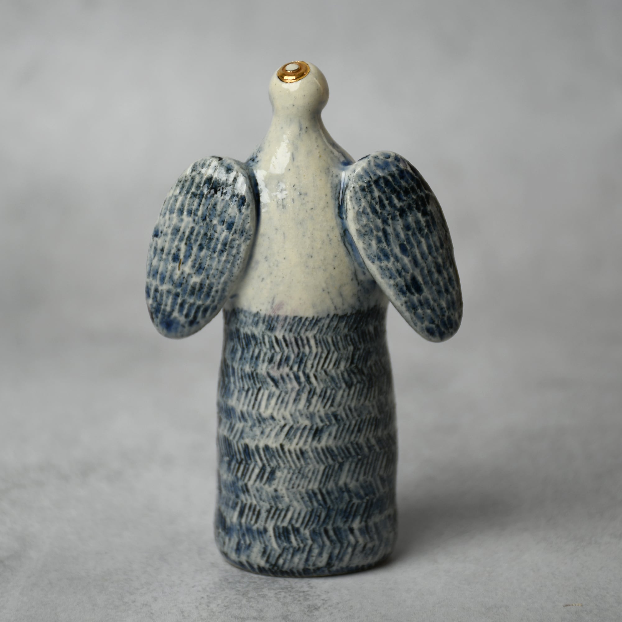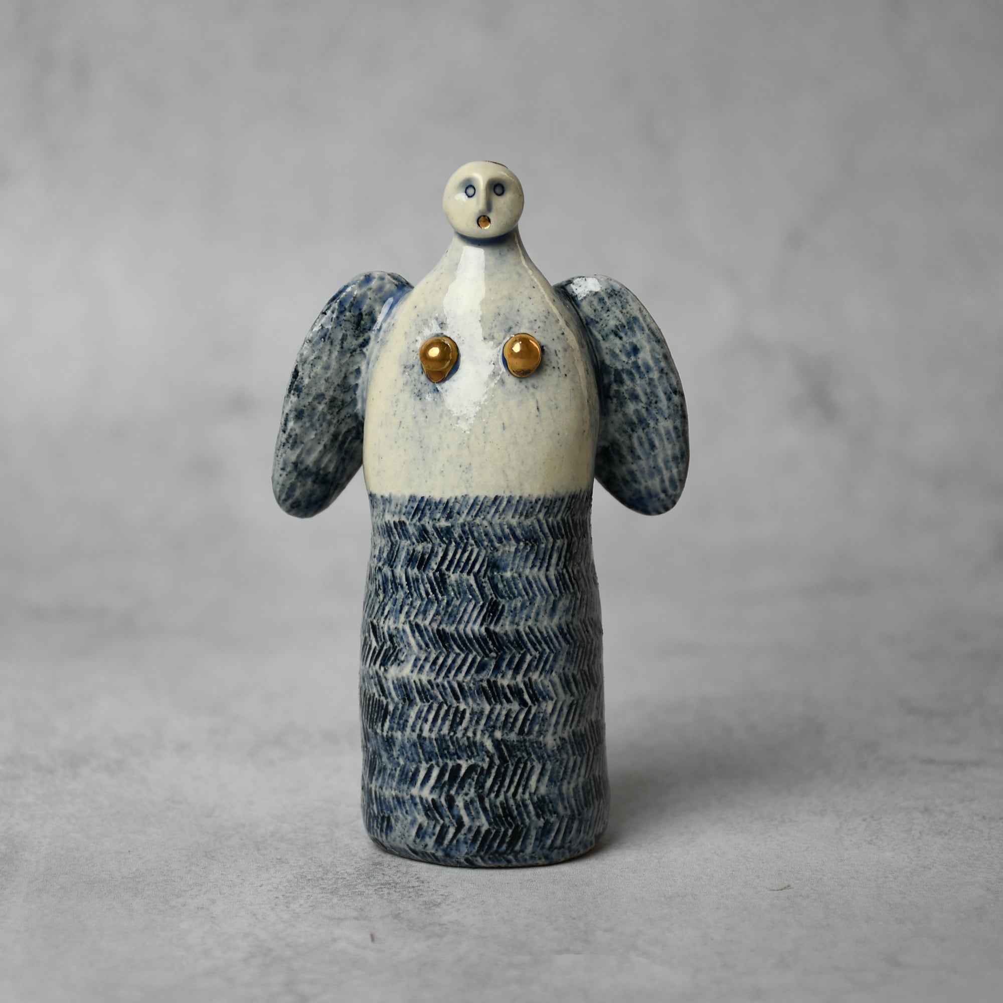 小さな命を祈って、こねこね手を動かしているうちに生まれてきた陶の天使。いつのまにか胸に窓がついたり、お花が咲いたり、しっぽが生えたり...不思議な姿に変化してきました。お守りとしてお部屋の片隅に居させてもらえたらいいな。みなさまに幸せを運びますように。