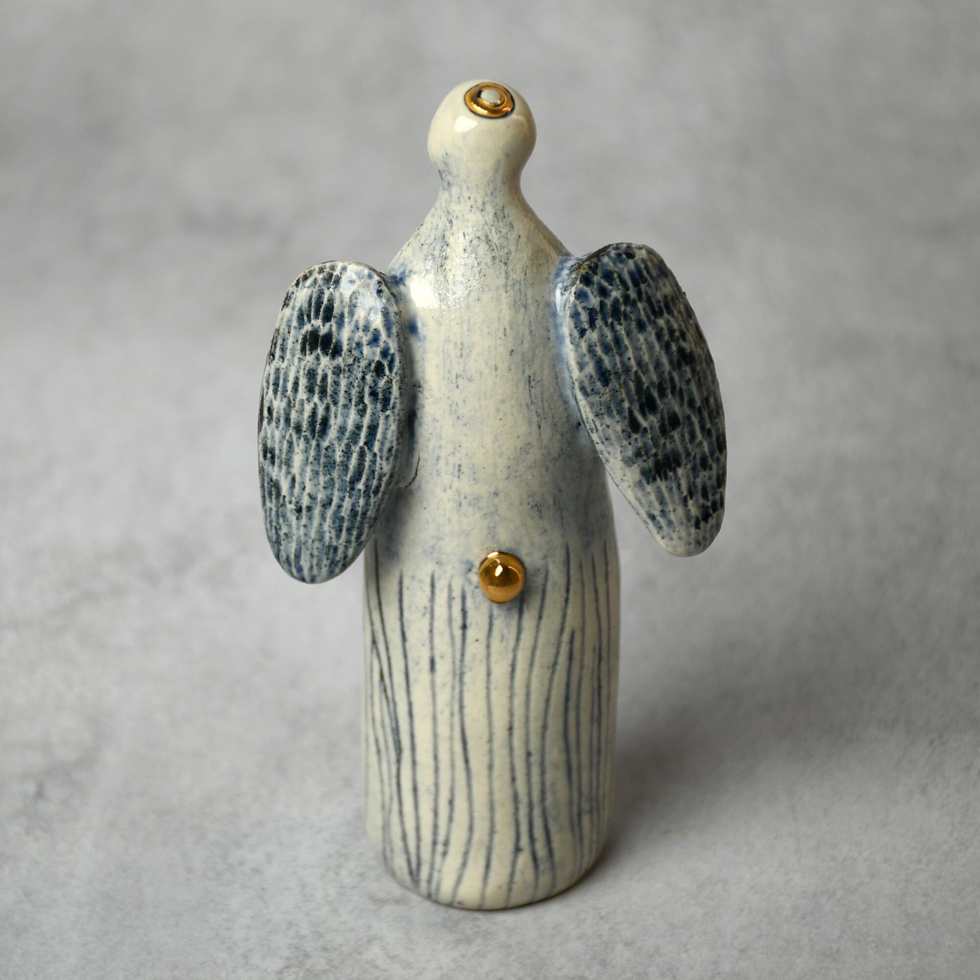 小さな命を祈って、こねこね手を動かしているうちに生まれてきた陶の天使。いつのまにか胸に窓がついたり、お花が咲いたり、しっぽが生えたり...不思議な姿に変化してきました。お守りとしてお部屋の片隅に居させてもらえたらいいな。みなさまに幸せを運びますように。