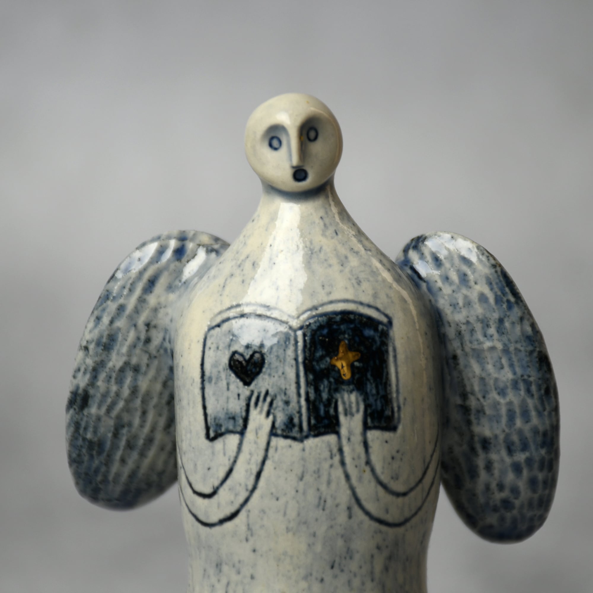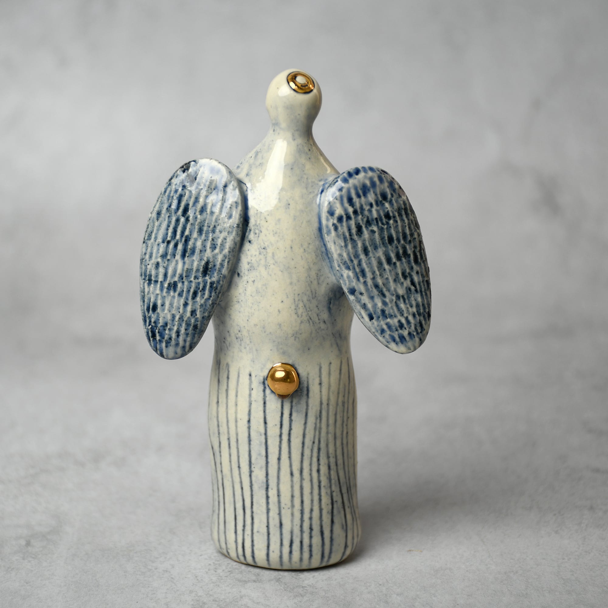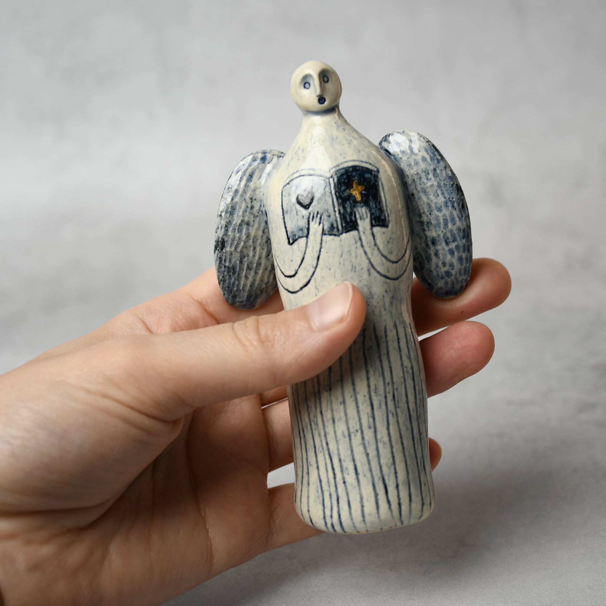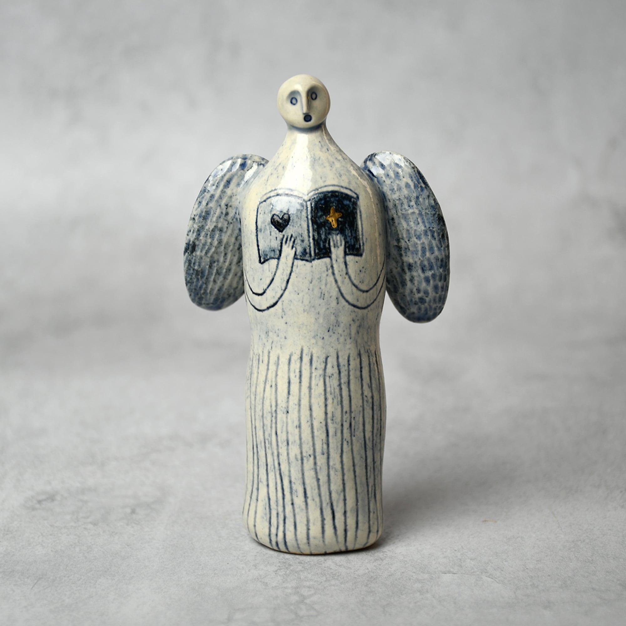 小さな命を祈って、こねこね手を動かしているうちに生まれてきた陶の天使。いつのまにか胸に窓がついたり、お花が咲いたり、しっぽが生えたり...不思議な姿に変化してきました。お守りとしてお部屋の片隅に居させてもらえたらいいな。みなさまに幸せを運びますように。