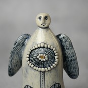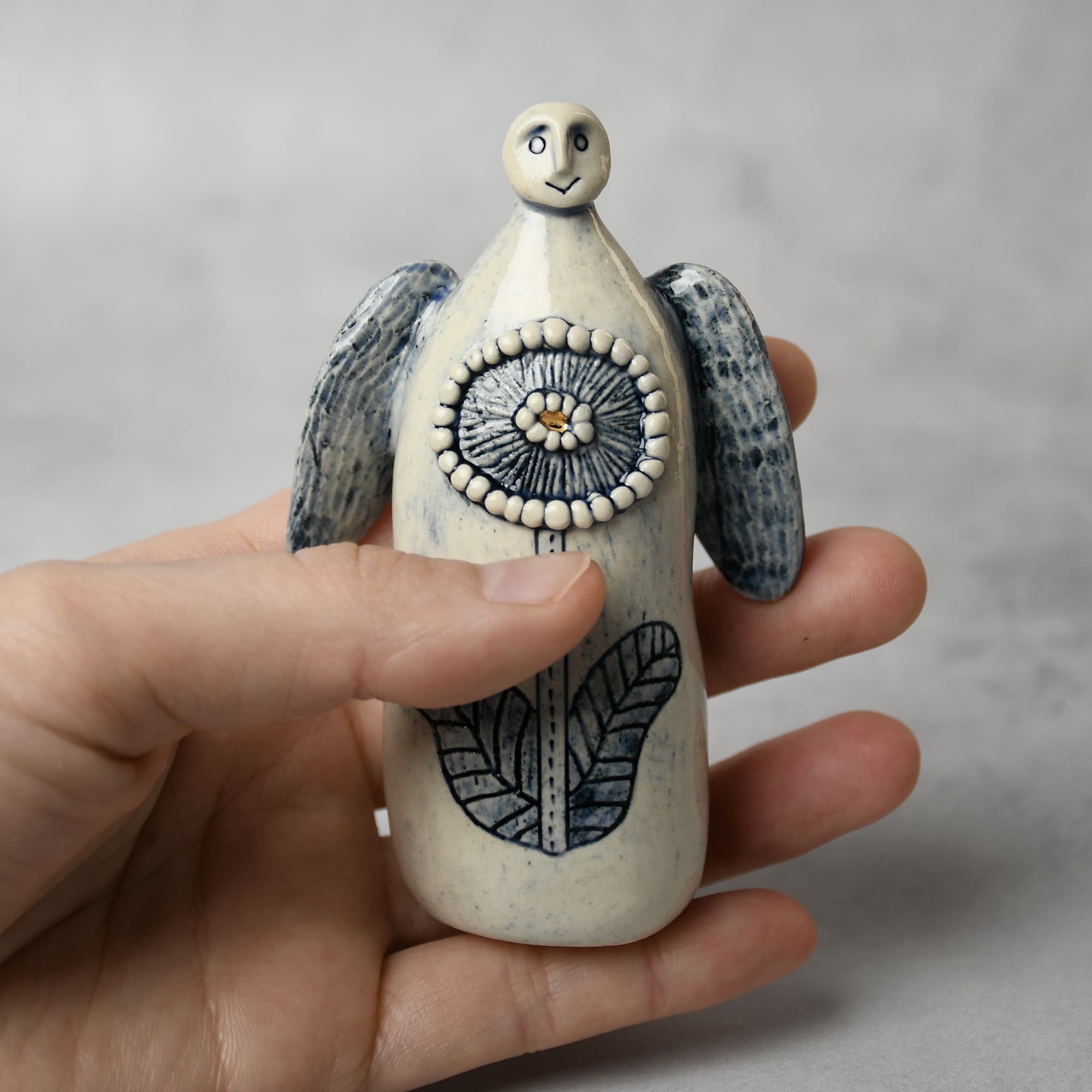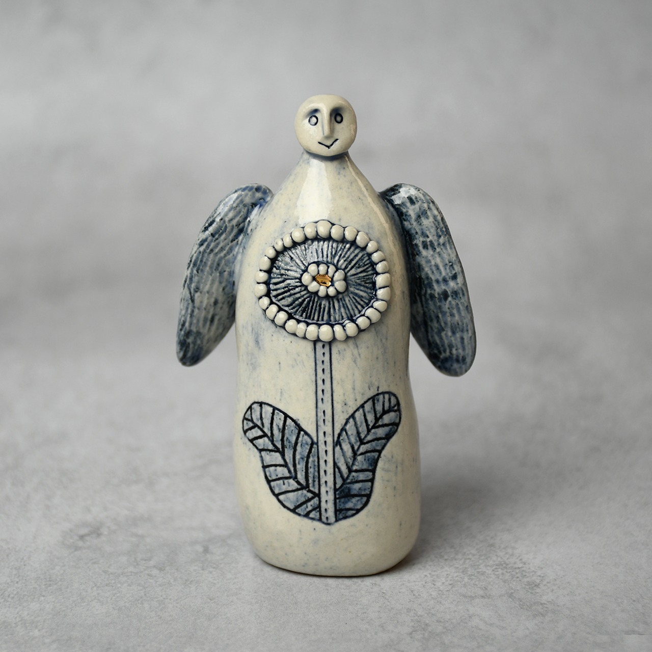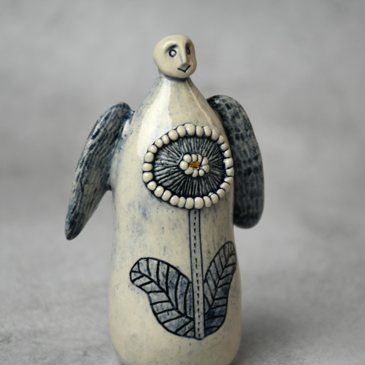 小さな命を祈って、こねこね手を動かしているうちに生まれてきた陶の天使。いつのまにか胸に窓がついたり、お花が咲いたり、しっぽが生えたり...不思議な姿に変化してきました。お守りとしてお部屋の片隅に居させてもらえたらいいな。みなさまに幸せを運びますように。