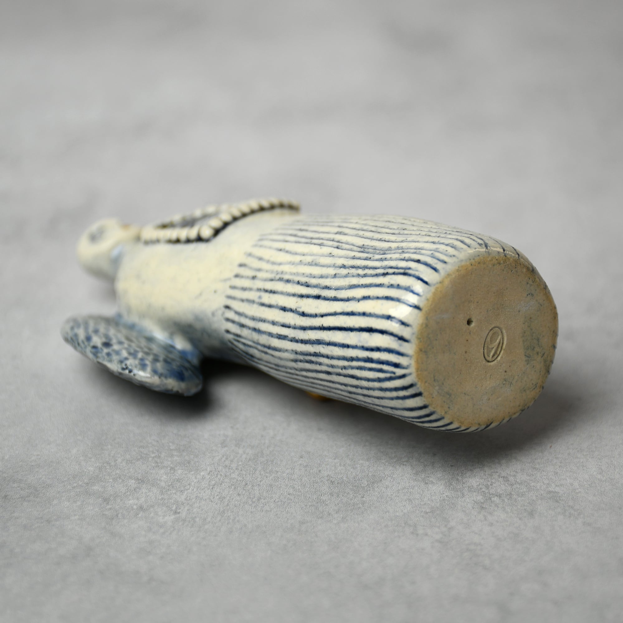 ・お顔や模様は彫りで表現しており、手に取ると凹凸を感じられます。落ち着いた色調の呉須(ごす)のブルーに、ピカピカの金彩を加えています。